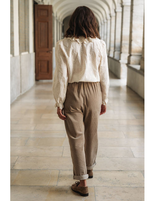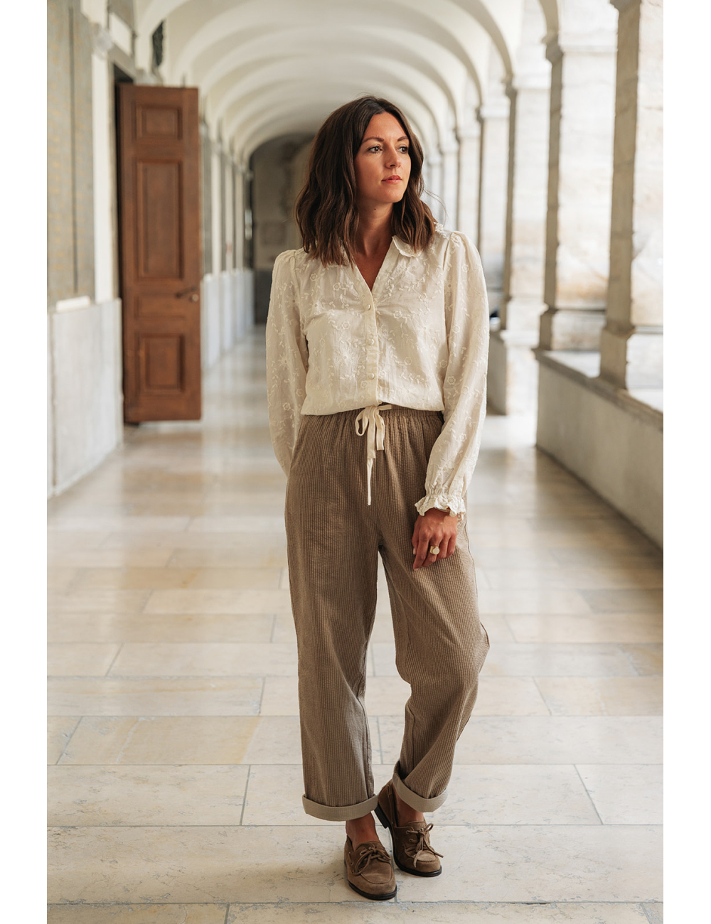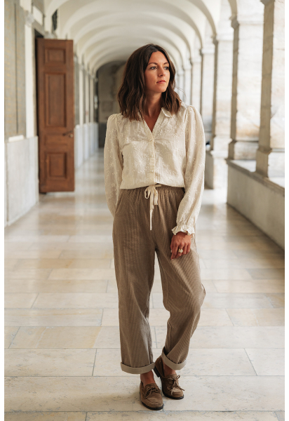 Le pantalon Gabriel est porté avec la chemise Elise.