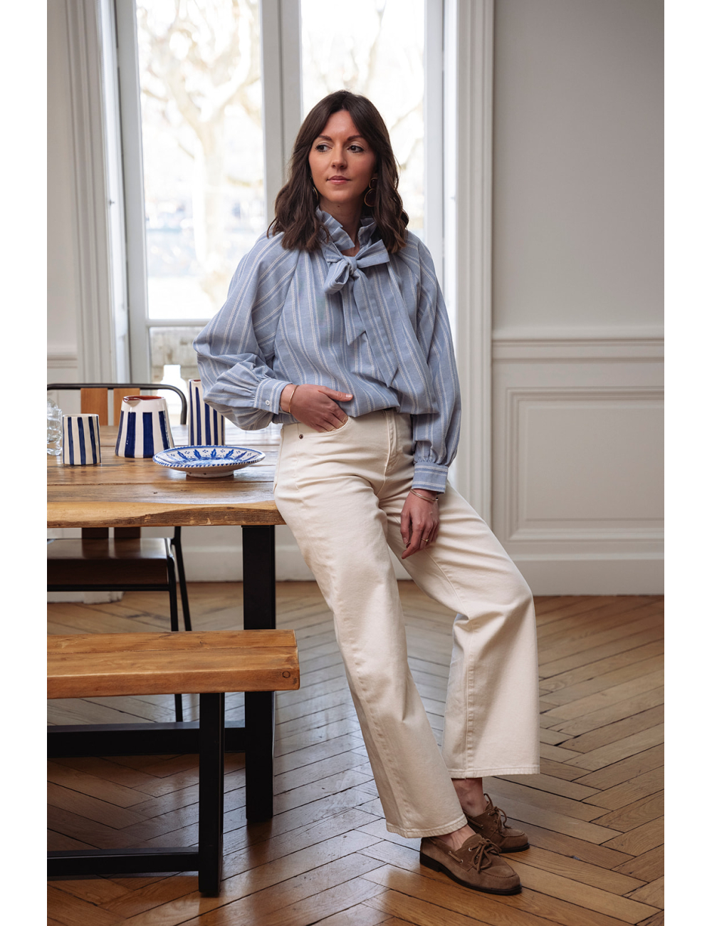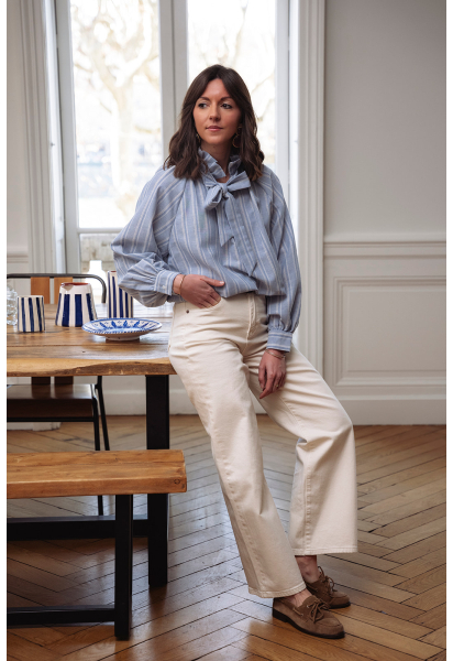 Conseil taille : Manon mesure 1m64 et porte une taille 34.Choisissez votre taille habituelle.Le pantalon Ben est porté avec la chemise Isis.