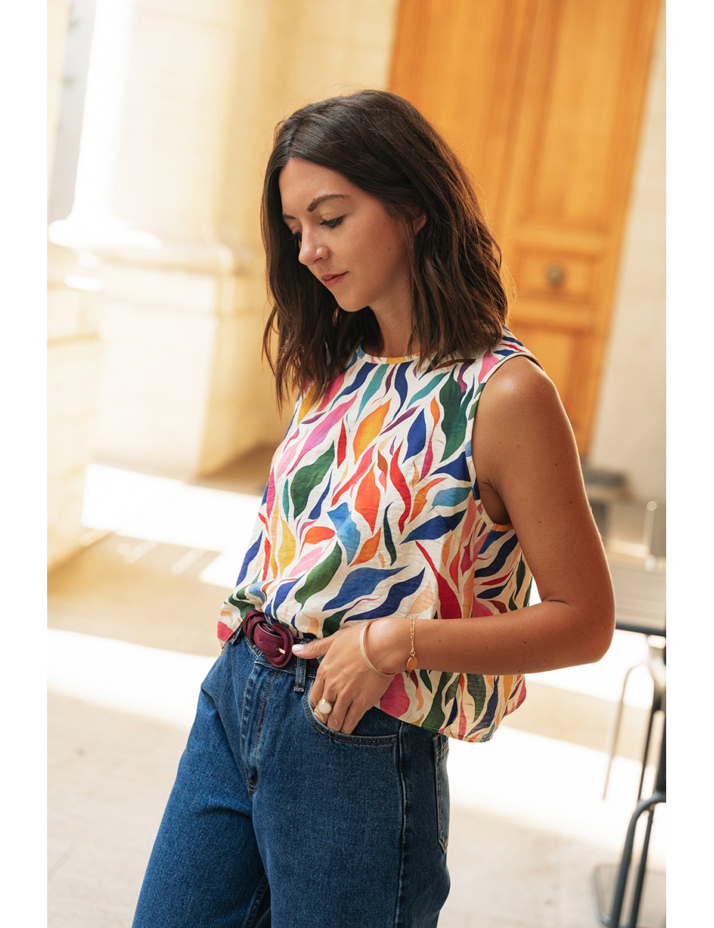 Le top Solène est porté avec le jean Billy.