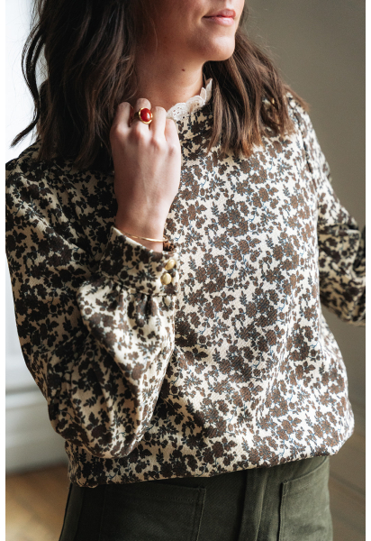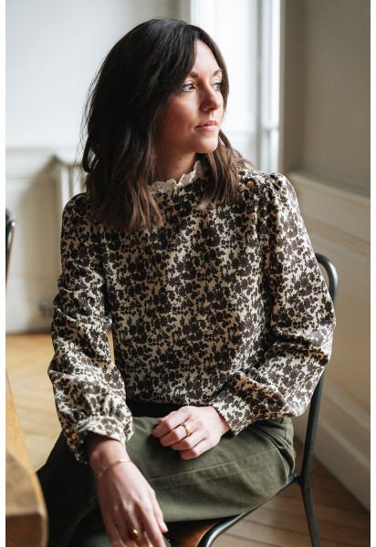 La blouse Hortense est portée avec le pantalon Pablo kaki.