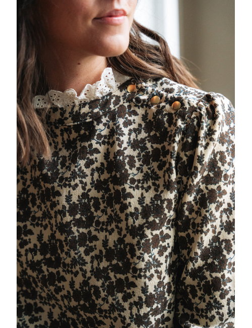 Conseil taille : Manon mesure 1m64 et porte une taille S.La taille S correspond à un 36. La taille M correspond à un 38. La taille L correspond à un 40. Choisissez votre taille habituelle.- Manches longues resserrées sur le poignet par un bouton - Col arrondi - Boutonnage intégral - Coupe ample - Fleurs brodées sur la chemise - Longueur 61 cm à partir de l’épaule pour une taille S/M- Tailles S/M, M/L - 100% coton- Lavage à froid