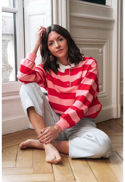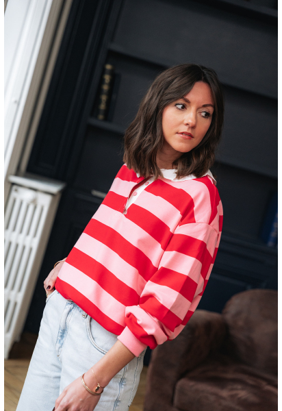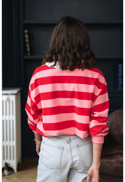 Sweat à rayures rouges et roses