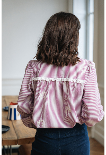 - Manches longues boutonnées aux poignets- Encolure arrondie avec empiècement en dentelle - Dos boutonné- Longueur 60 cm à partir de l’épaule pour une taille S- Tailles S, M, L - 100% coton - Lavage délicat à froidLa blouse Solène est portée avec le pantalon Pablo marine.