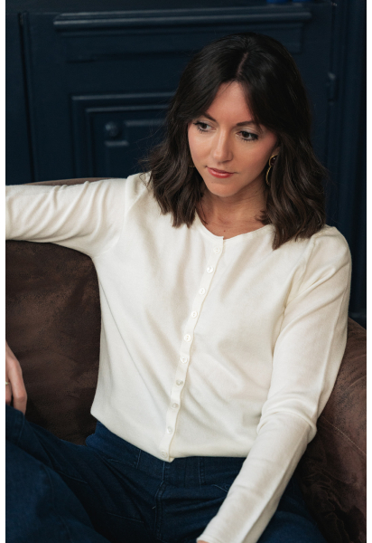 Conseil taille : Manon mesure 1m64 et porte une taille S/M.La taille S/M correspond à un 36/38. La taille M/L correspond à un 38/40. Choisissez votre taille habituelle.La blouse Carmen est porté avec le gilet Orlando.