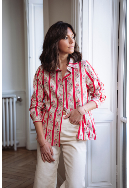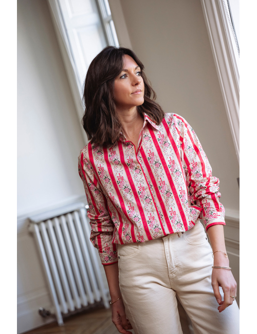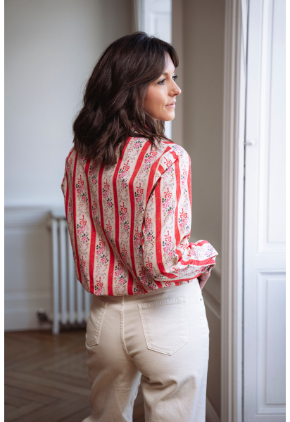 Chemise printemps à fleurs rouge et rose