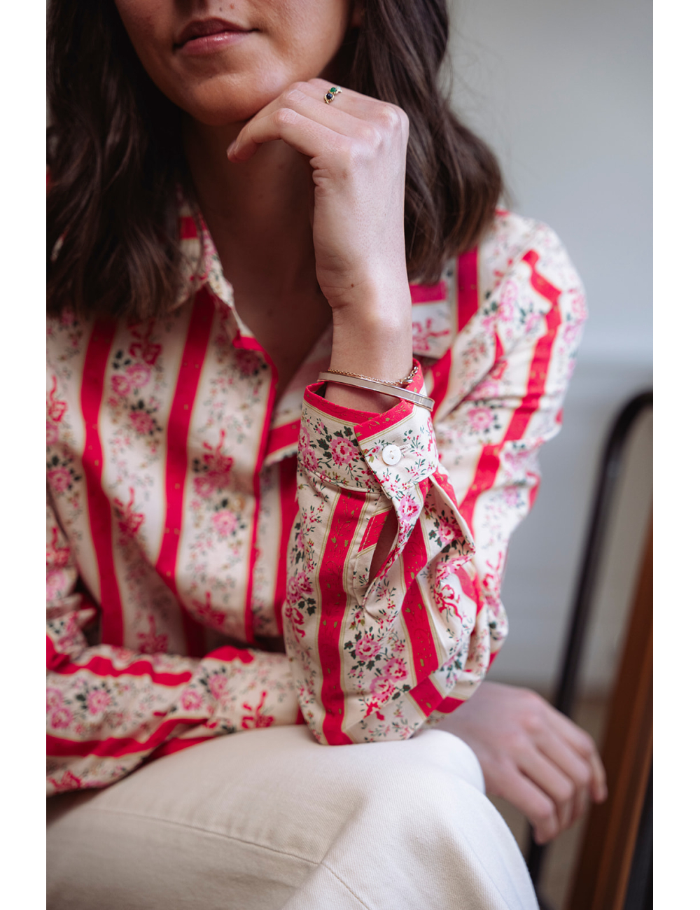 Conseil taille : Manon mesure 1m64 et porte une taille S/M.La taille S/M correspond à un 36/38. La taille M/L correspond à un 38/40.Choisissez votre taille habituelle.Chemise brodée à rayures