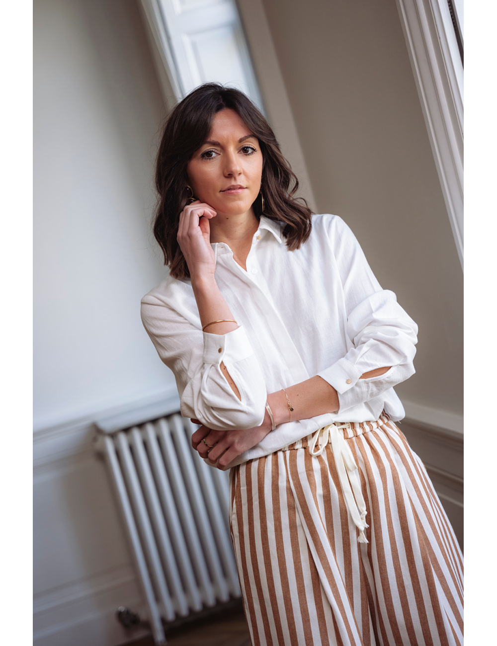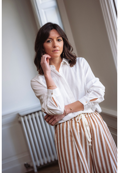Conseil taille : Manon mesure 1m64 et porte une taille S.La taille XS correspond à un 34. La taille S correspond à un 36. La taille M correspond à un 38. La taille L correspond à un 40. Choisissez votre taille habituelle.La chemise Romane est portée avec le pantalon Pablo.