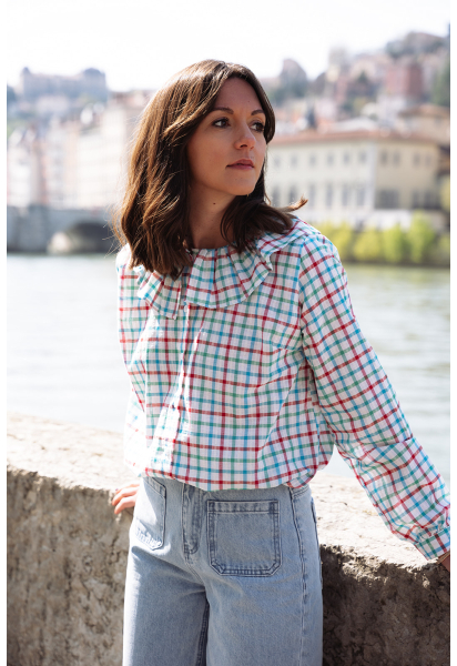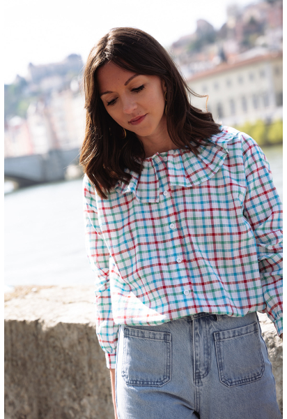 - Manches longues resserrées sur le poignet par un bouton - Encolure ronde avec volant - Boutonnage intégral - Longueur 60 cm à partir de l’épaule pour une taille S- Tailles S, M, L - 100% coton - Lavage délicat à froidLa chemise Candie est portée avec le jean Joé.