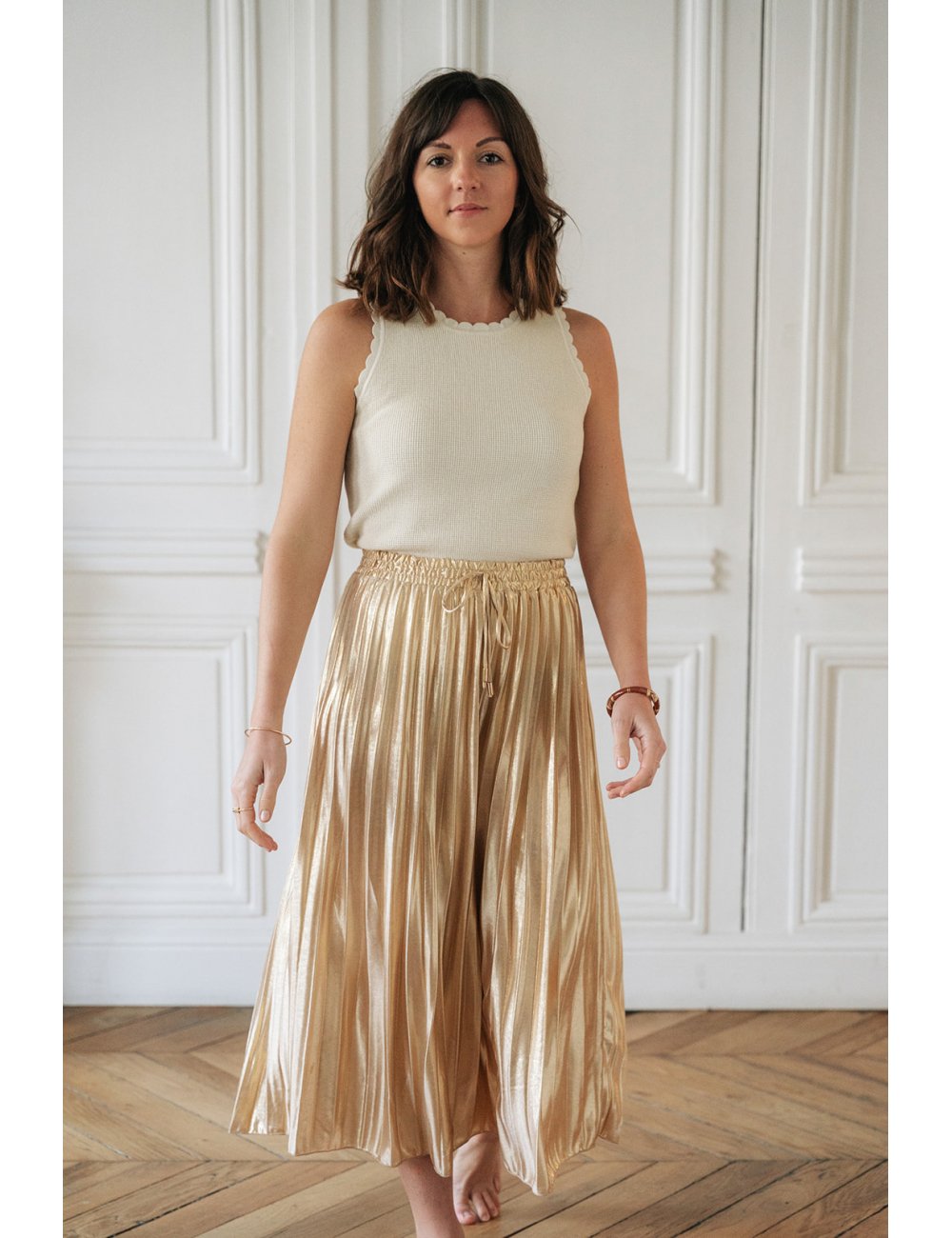 - Taille haute et élastique - Lien à nouer à la taille- Tissu plissé- Longueur 79 cm pour une taille S- Tailles S, M, L - 100% polyester - Lavage à froidLa jupe Dorothée est portée avec le top Rio.