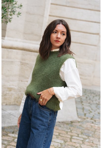 Conseil taille : Manon mesure 1m64 et porte un 36 habituellement.La taille unique conviendra pour les tailles 36, 38, 40.Le pull Paolo est porté avec la chemise Maya.