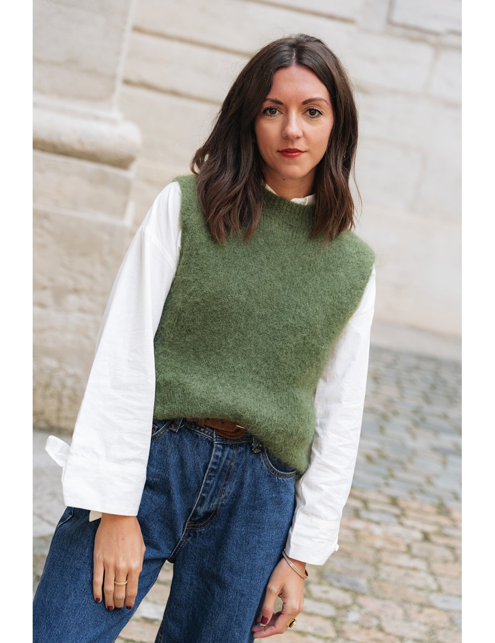 Le gilet Soly est porté avec le jean Billy.