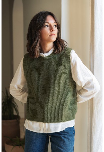 Conseil taille : Manon porte habituellement un 36 et mesure 1m64.La taille unique conviendra pour les tailles 36, 38 et 40Le gilet Charly est porté avec le pantalon Pablo.
