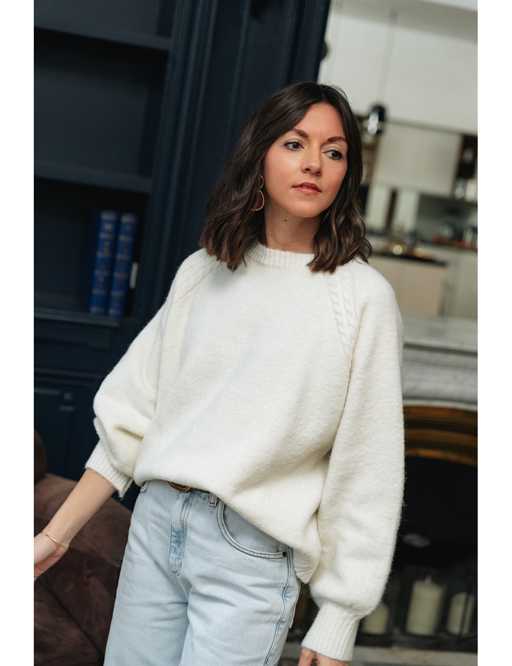 Conseil taille :Manon mesure 1m64 et porte une taille S/M.La taille S/M correspond à un 36/38. La taille M/L correspond à un 38/40. Choisissez votre taille habituelle.Le pull Etienne est porté avec le short Aubin.