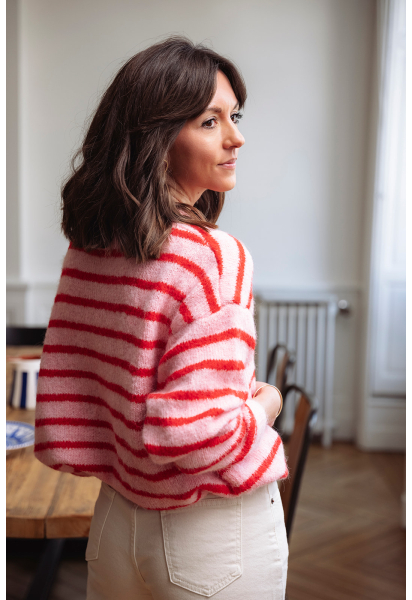 Maille à rayures rouges