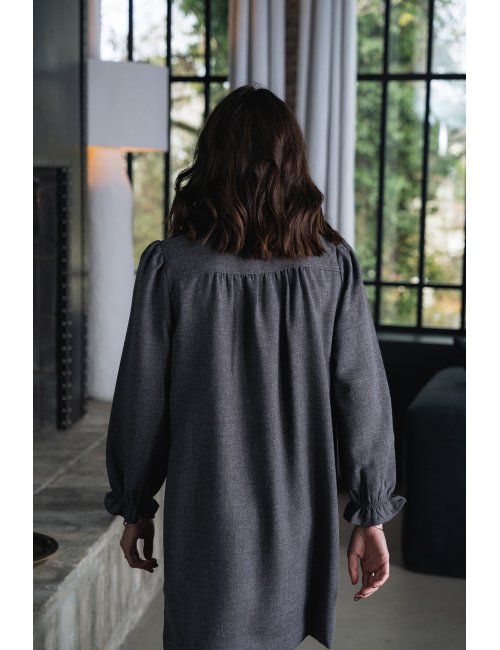 - Manches longues resserrées sur le poignet par un élastique- Volants au col et aux manches- Patte de boutonnage au décolleté - Longueur 82 cm à partir de l’épaule pour une taille S- Tailles XS, S, M, L - 60% polyester, 20% viscose, 20% laine- Lavage à la main