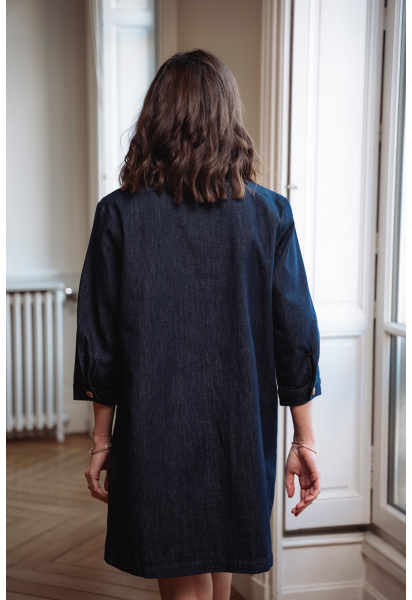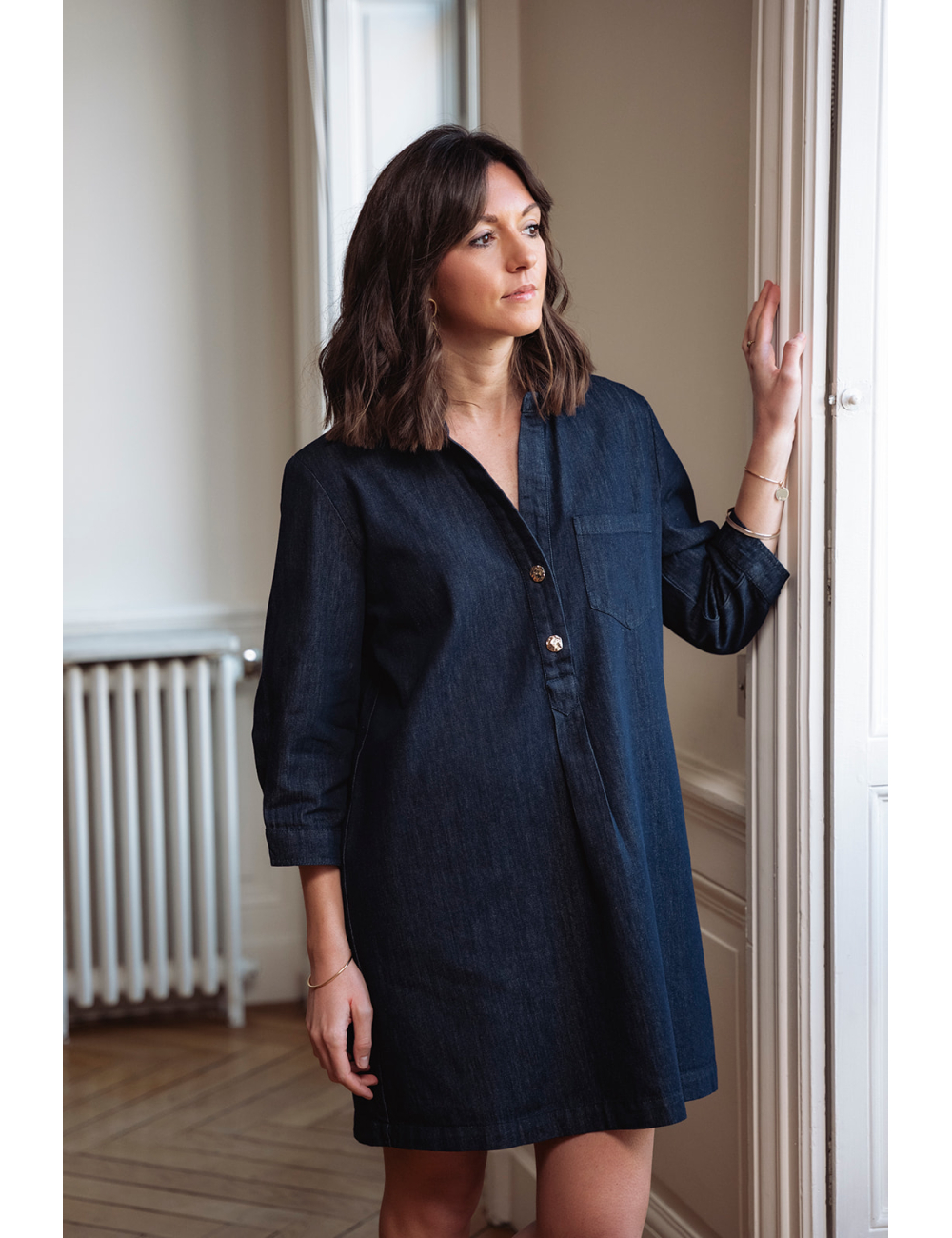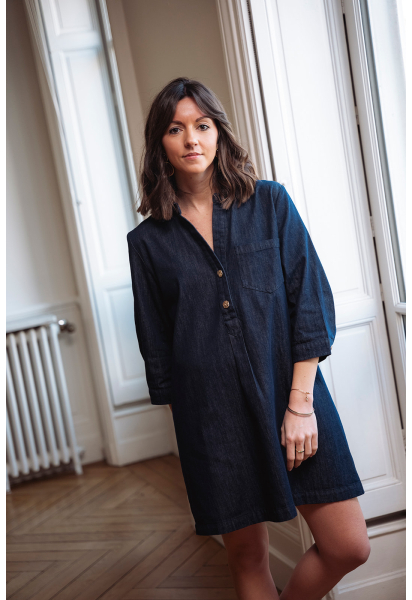 - Manches longues- Col chemise - Patte de boutonnage au décolleté - Poches plaquées sur le devant - Coupe droite- Longueur 86 cm à partir de l’épaule pour une taille S- Tailles XS, S, M, L - 100% coton - Lavage à froid Conseil taille : Manon mesure 1m64 et porte une taille S.La taille XS correspond à un 34. La taille S correspond à un 36. La taille M correspond à un 38. La taille L correspond à un 40. Choisissez votre taille habituelle.Robe courte en jean