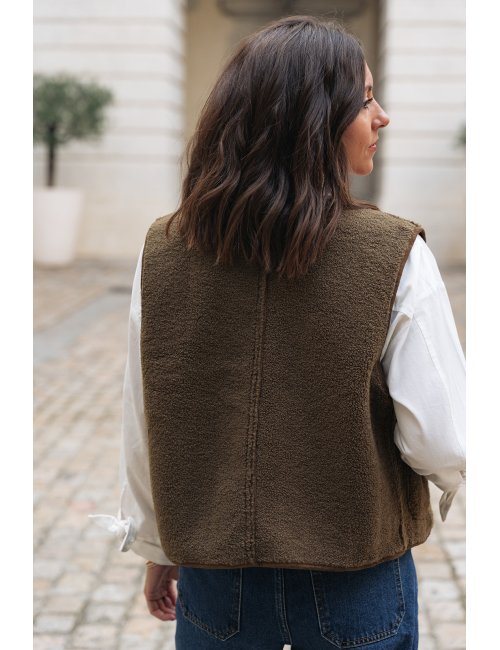 Conseil taille :Manon mesure 1m64 et porte une taille S/M.La taille S/M correspond à un 36/38. La taille M/L correspond à un 38/40. Choisissez votre taille habituelle.- Gilet sans manche- Boutonnage intégral - Poches sur les côtés - Longueur 60 cm à partir de l’épaule pour une taille S/M- Tailles S/M, M/L- 100% polyester - Lavage délicat à froid