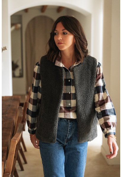 Conseil taille :Manon mesure 1m64 et porte une taille S/M.La taille S/M correspond à un 36/38. La taille M/L correspond à un 38/40. Choisissez votre taille habituelle.Gilet réversible