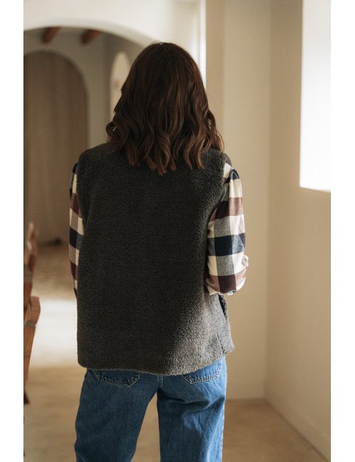 Conseil taille : Manon mesure 1m64 et porte une taille S.La taille S correspond à un 36. La taille M correspond à un 38. La taille L correspond à un 40. Choisissez votre taille habituelle. Entre deux tailles, choisissez la taille en-dessous.- Gilet sans manche- Boutonnage intégral - Poches sur les côtés - Longueur 60 cm à partir de l’épaule pour une taille S/M- Tailles S/M, M/L- 100% polyester - Lavage délicat à froid