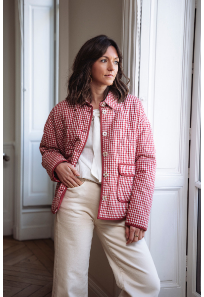 Veste printemps à carreaux rouges