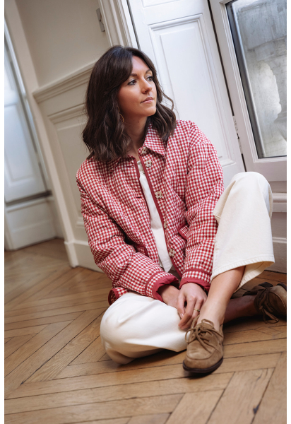 - Manches longues - Col rond- Boutonnage intégral - Poches plaquées sur le devant- Veste matelassée avec intérieur motif carreaux - Longueur 60 cm à partir de l’épaule pour une taille S/M- Tailles S/M, M/L- 100% coton - Lavage délicat à froidLa veste Garance est portée avec le top Cole.
